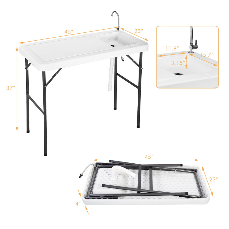 1.Folding Fish Cleaning Table: Portable folding leg design which is easy to move and storage. It's very convenient to take it with you to travel or go camping.